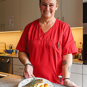 Die Hausgemeinschaften sind von unserer Küche unabhängig. Die Verpflegung wird pro Hausgemeinschaft von einer Alltagsbegleiter*in für die dortigen Bewohner*innen, fallweise unter deren freiwilliger Mithilfe, zubereitet.