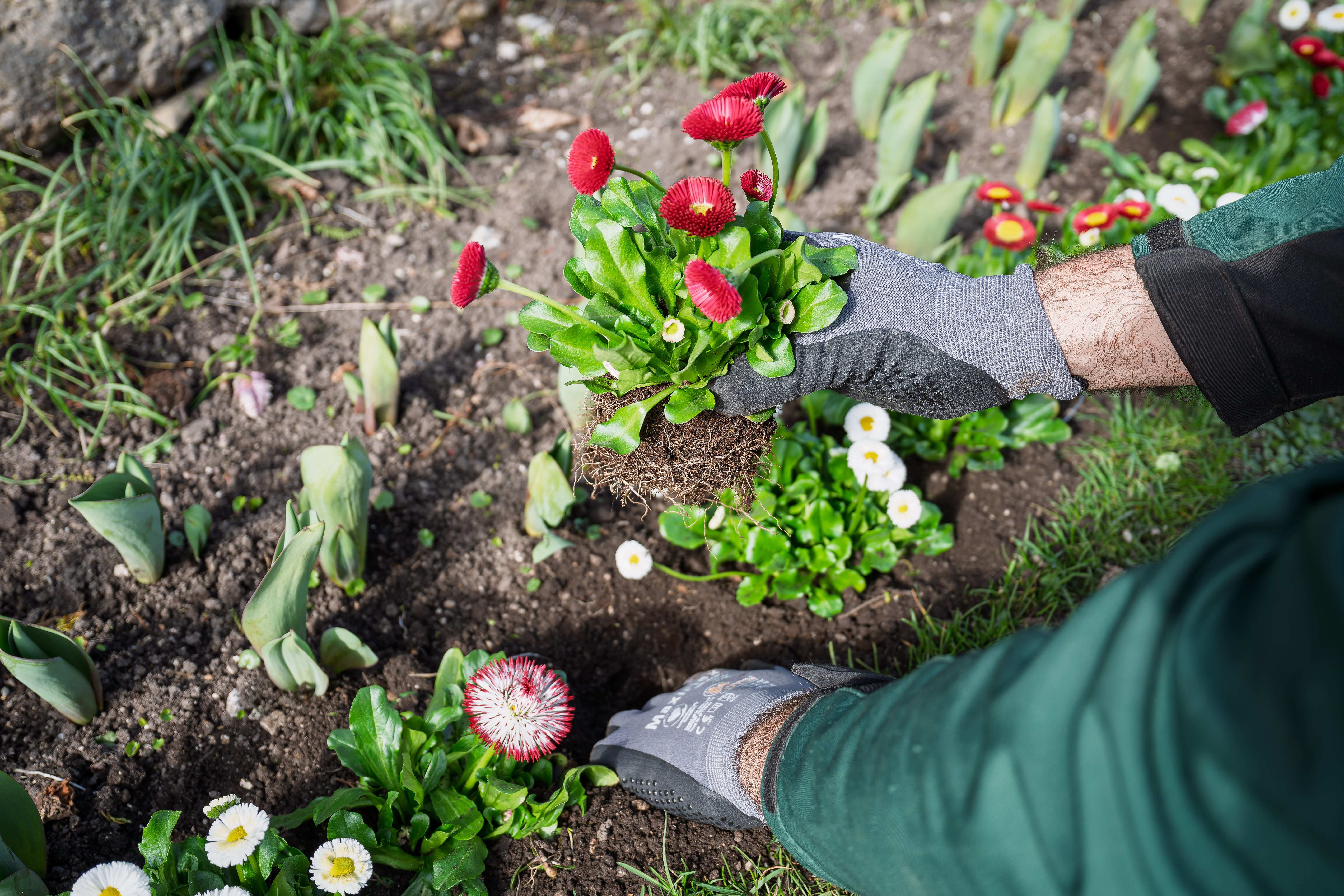 - Im Frühling zieren bereits tausende Stiefmütterchen, Bellis und Vergissmeinnicht den Garten. Bis zu 50.000 Pflanzen wurden dafür in den Vormonaten gesetzt. Die Winterabsperrungen werden entfernt und Parkbänke werden aufgestellt.