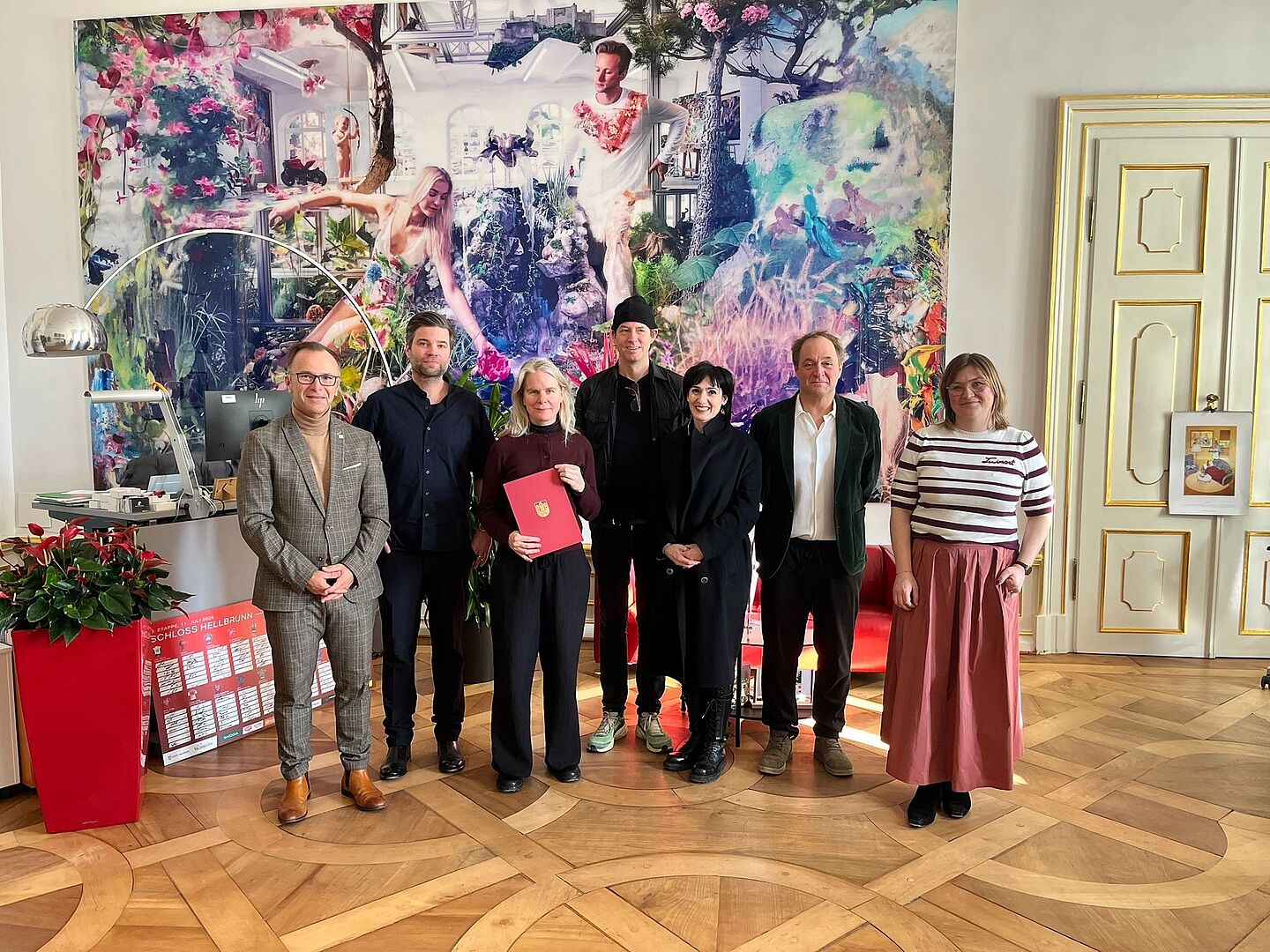 (v.l.n.r.: Bürgermeister Bernhard Auinger, Vorsitzender des Gestaltungsbeirats Dominik Bueckers, neues Mitglied Karoline Streeruwitz, Mitglied Nils Buschmann, Mitglied Michaela Wolf, Mitglied Josef Saller, Planungsstadträtin Anna Schiester).