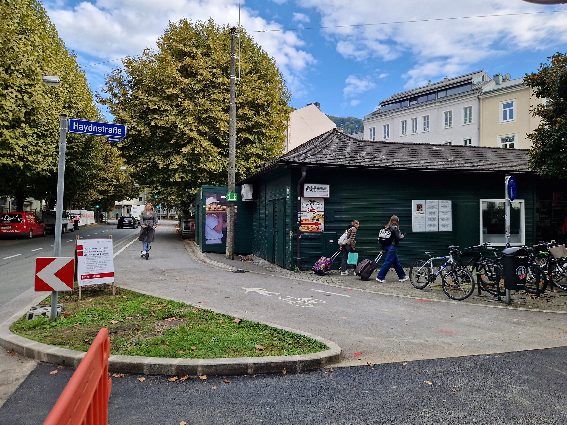 Für die Bauzeit ist auch eine Sperre des Geh- und Radwegs entlang der Franz-Josef-Straße notwendig: Zwischen den Kreuzungen Haydnstraße und Hubert-Sattler-Gasse/Wolf-Dietrich-Straße ist der Bereich nicht passierbar. Radfahrer:innen werden für die Dauer der Arbeiten auf die Fahrbahn ausgeleitet. Fußgänger:innen werden gebeten, die Straßenseite zu wechseln bzw. über die Haydnstraße und die Hubert-Sattler-Gasse auszuweichen. Die Standorte der Ersatztoiletten sowie die Umleitungen sind vor Ort deutlich beschildert. Auch die Fahrradständer im Kreuzungsbereich müssen vorübergehend entfernt werden.