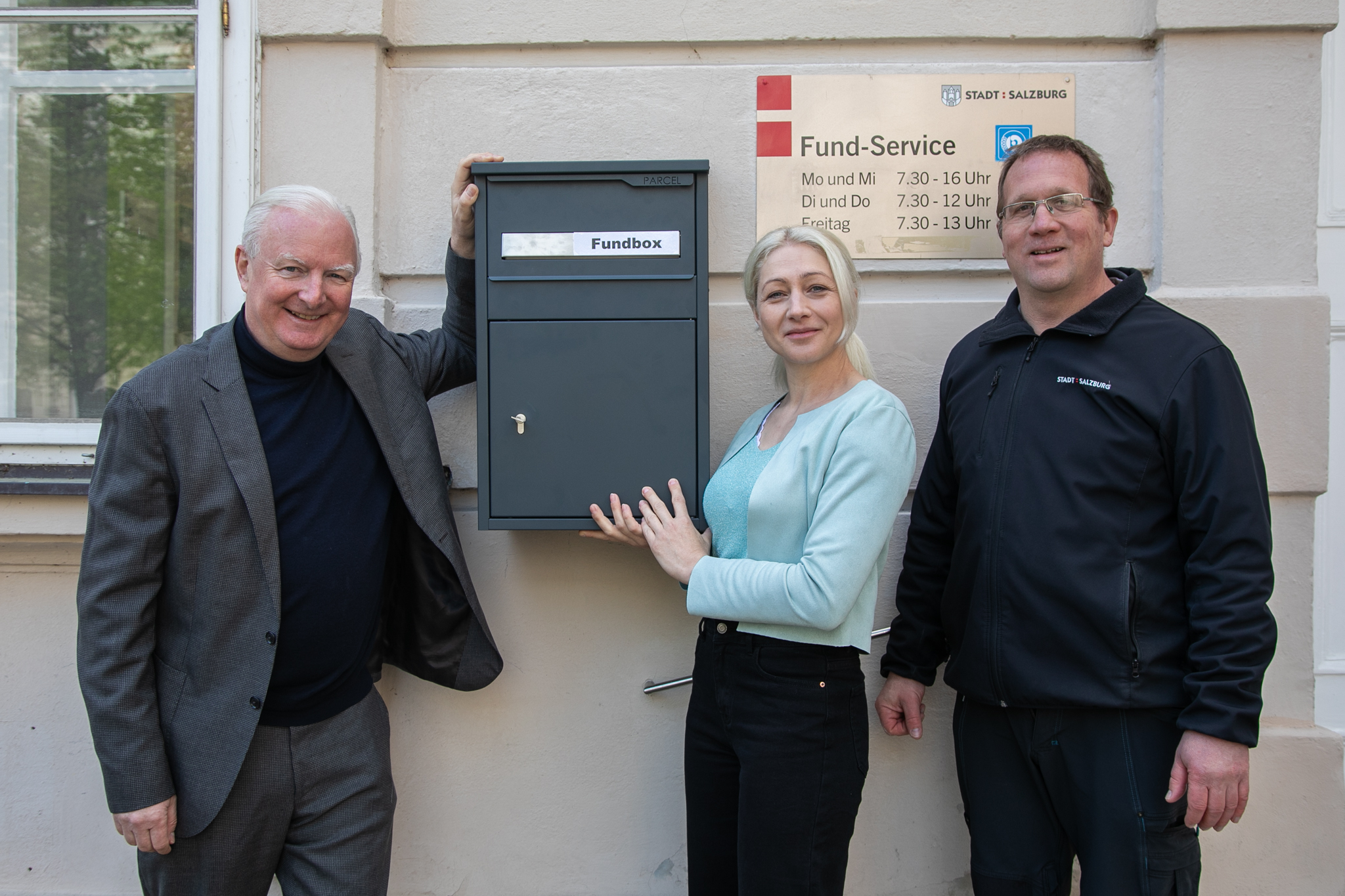 Wer in Salzburg einen verlorenen Gegenstand am Abend oder am Wochenende findet, kann diesen ab sofort noch einfacher beim Fundservice abgeben: Im Hof des Schlosses Mirabell wurde eine neue, besonders gesicherte Fundbox installiert. Sie befindet sich direkt neben dem Pass- und Fundservice (Eingang 3) und ermöglicht die Abgabe auch außerhalb der Öffnungszeiten.