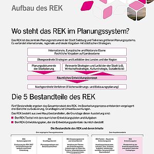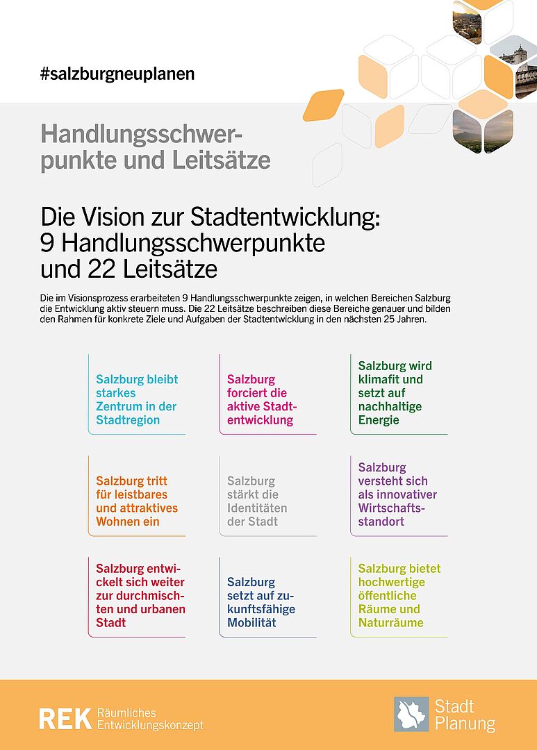 Der Stadtkompass für Salzburgs StadtentwicklungDas Räumliche Entwicklungskonzept (REK) ist die Grundlage für die Stadtentwicklung Salzburgs in den nächsten 25 Jahren.