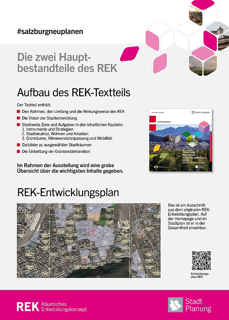 Parallel zur öffentlichen Auflage lädt die Stadt zur Ausstellung „REK – Salzburgs Zukunftsplan“ ein.