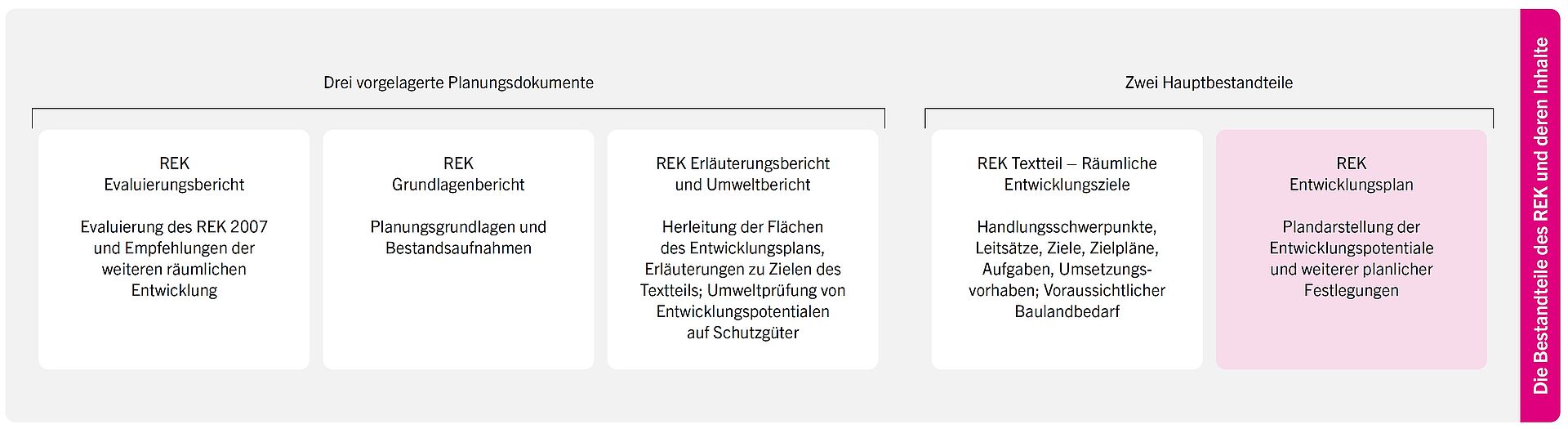 Der REK-Textteil – Räumliche Entwicklungsziele ist Kernstück des REK und ist in mehrere Teile gegliedert.