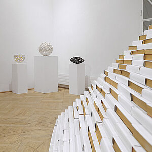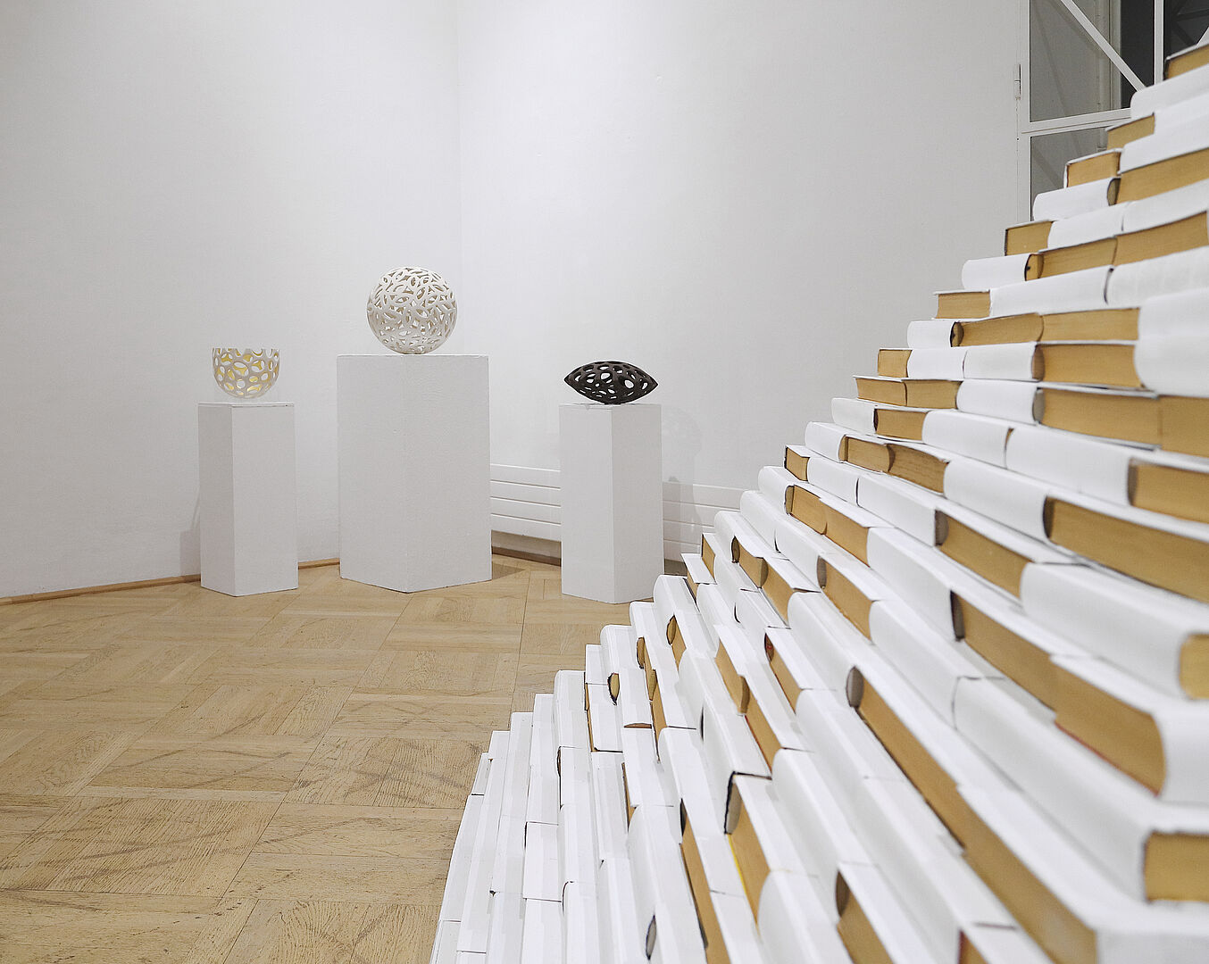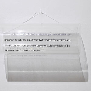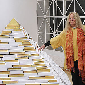 Marianne Ewaldt blickt auf 60 Jahre künstlerisches Schaffen zurück. Von Anfang an nehmen metaphysische Themen in ihrem Werk einen breiten Raum ein. Der Wunsch der Künstlerin, die Materie mit geistigem Inhalt zu füllen kommt in keramischen Objekten, Pyramiden und den aktuellen labyrinthischen Gestaltungen zum Ausdruck. In der Ausstellung finden sich auch Werke von Freunden und Künstlerkolleg:innen, in Erinnerung an gemeinsam erlebte Streifzüge durch die lineare Zeit. „Meine Werke sind in der Polarität im Feld der Freude angesiedelt und möchten positive Spuren hinterlassen.“