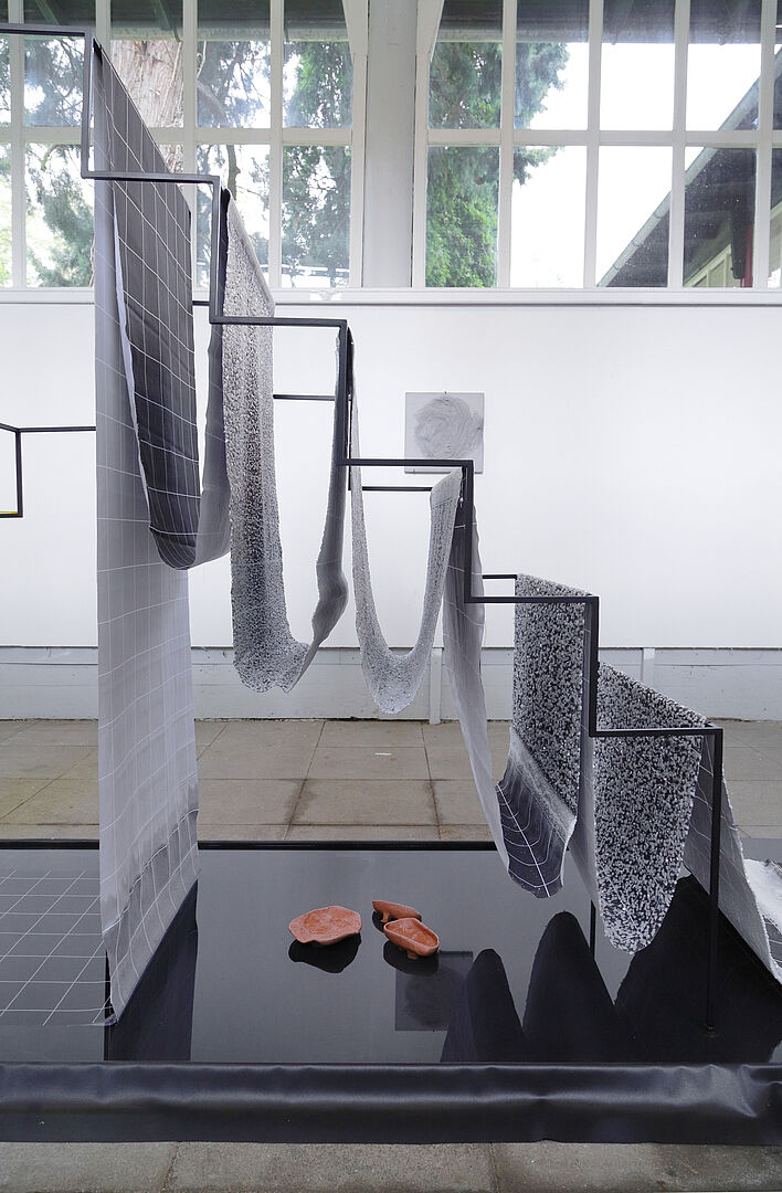 Die Ausstellung versammelt sechs künstlerische Positionen, die sich mit unterschiedlichen Aspekten von Landschaft befassen. Raumgreifende Installationen thematisieren natürliche Vorgänge, fließende Übergänge und irritierende Brüche. Fotografische und grafische Arbeiten transformieren organische Formen und Flächen. Floating lässt ein vielschichtiges Bild entstehen, wie Landschaft gedacht, gespürt und imaginiert werden kann.