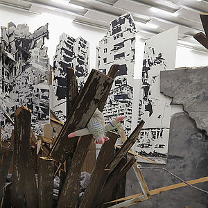 In der Arbeit von Gloria Zoitl nimmt der soziale Raum eine zentrale Position ein. Immer wieder setzt sie sich als Malerin, Zeichnerin und Objektkünstlerin mit brisanten aktuellen Themen, menschlichen Bruchstellen und autobiografisch konnotierten Lebenszyklen auseinander. Die Ausstellung in der Stadtgalerie Lehen verbindet ausgewählte Malereien in einer raumgreifenden, begehbaren Installation, gemäß dem Titel, mit den derzeitigen Kriegen und Krisen.