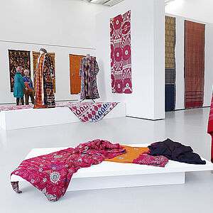 Mehr als 50 Jahre lang verbrachte der Architekt und Raumplaner Ferdinand Aichhorn jedes Jahr im Winter einige Wochen in Südost-asiatischen Ländern. Ausgestattet mit einem Rucksack und interessiert an Land und Leuten kam er in den 1980er Jahren erstmalig mit Textilien in Berührung, genau genommen mit dem IKAT, einer aufwändigen Reservierungstechnik, die sein textiles Interesse geweckt hat. Mittlerweile nehmen die Ikats einen zentralen Bestandteil der Sammlung ein. Im Laufe der Zeit vergrößerte sich die Kenntnis und das Interesse an unterschiedlichen Techniken und Materialien, sodass die Sammlung Aichhorn rund 3000 Textilien umfasst. Eine Auswahl dieser Kostbarkeiten wird in der Ausstellung gezeigt.