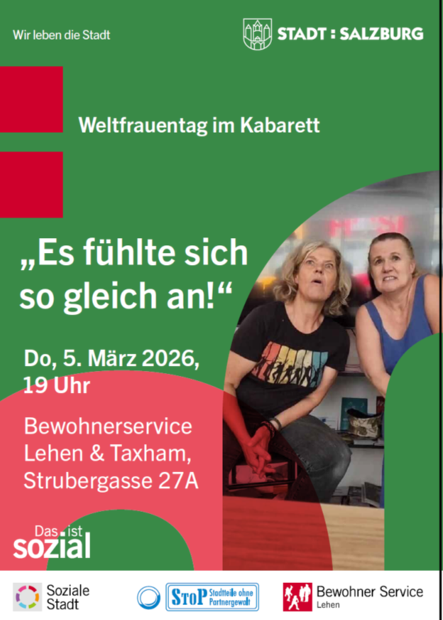 Wir laden Sie herzlich zum Kabarett im Bewohnerservice Lehen ein, keine Anmeldung erforderlich.