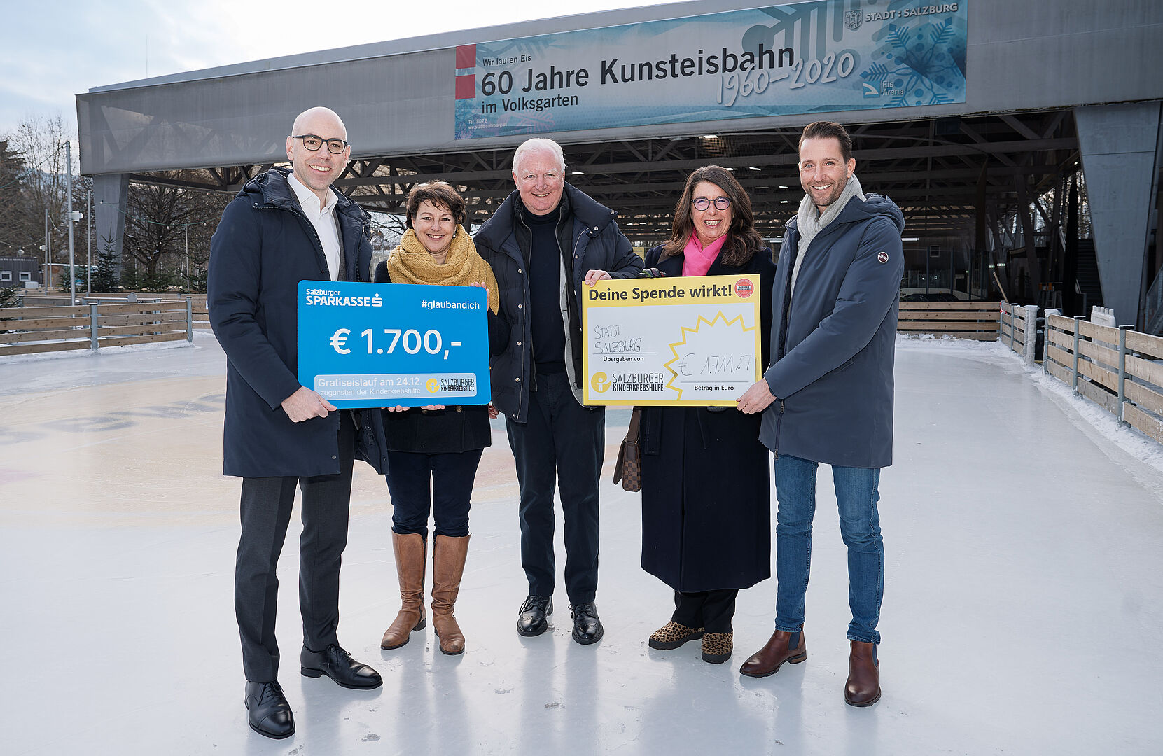 Die Spendensumme stammt aus dem traditionellen Gratis-Eislauf am 24. Dezember im Volksgarten. Auch im vergangenen Jahr luden die Städtischen Betriebe an Heiligabend wieder zum kostenlosen Eislaufen ein. 1.599 Eislauffans nutzten das Angebot und verkürzten sich die Wartezeit aufs Christkind auf dem Eis. Durch freiwillige Spenden sowie Einnahmen aus dem Schlittschuhverleih kamen 1.711,27 Euro zusammen. Die Salzburger Sparkasse steuerte 1.700 Euro bei und erhöhte die Spende somit auf 3.411,27.