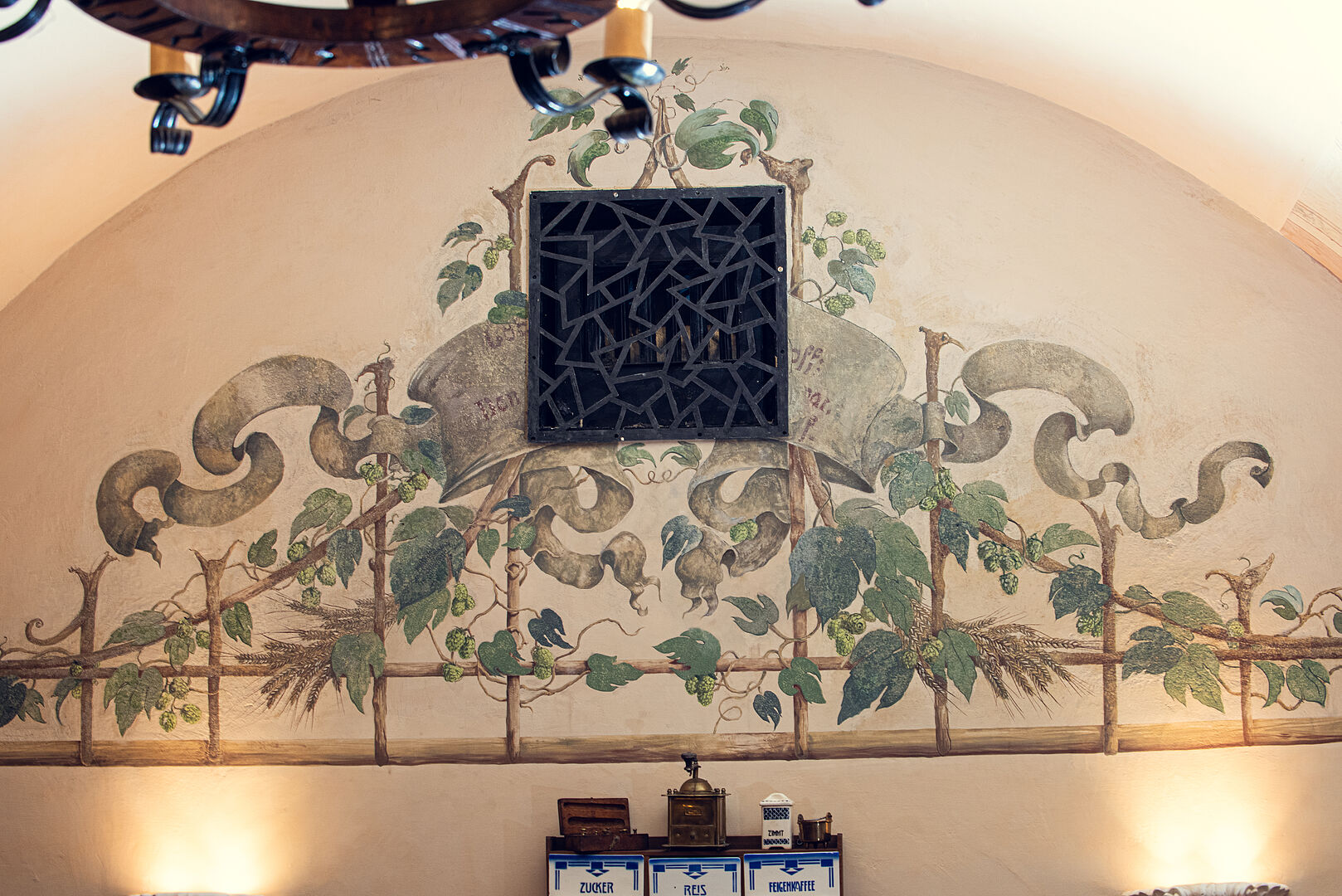 Im Zuge der Arbeiten wurden auch bis dato unbekannte Malereien entdeckt, die unter anderem Hopfen und Malz (Gerste) darstellen.