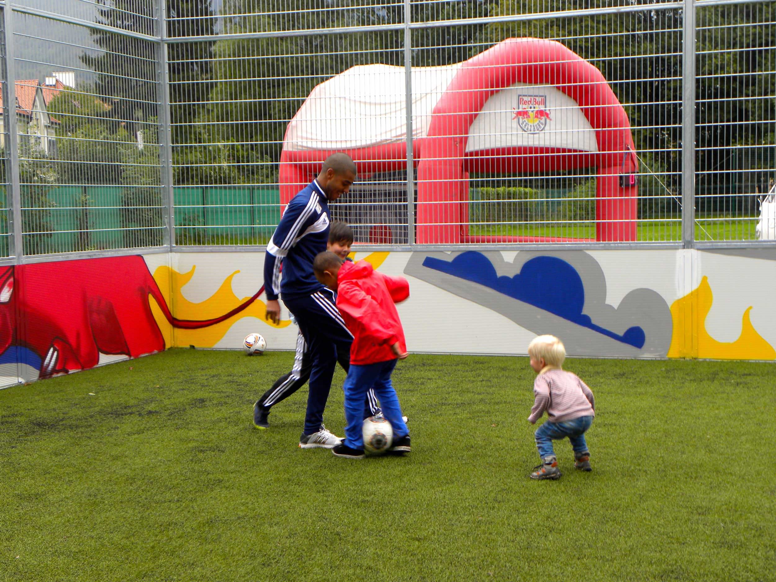 Streetsoccer ist die schnellste und ehrlichste Form des Fußballspielens und für die Freunde des runden Leders gibt es nun einen richtigen Leckerbissen. Der brandneue „Bolzkäfig“ – eine Kooperation zwischen dem Fc Redbull Salzburg und dem Jugendbüro der Stadt Salzburg – lädt alle Fußballfreunde von Jung bis Alt auf ein „Kickerl“ ein. Zur Eröffnung am Freitag, dem 20. September ließen es sich die beiden Redbull-Stars Alan und Stefan Ilsanker nicht nehmen mit Kids ein erstes Match zu bestreiten.
