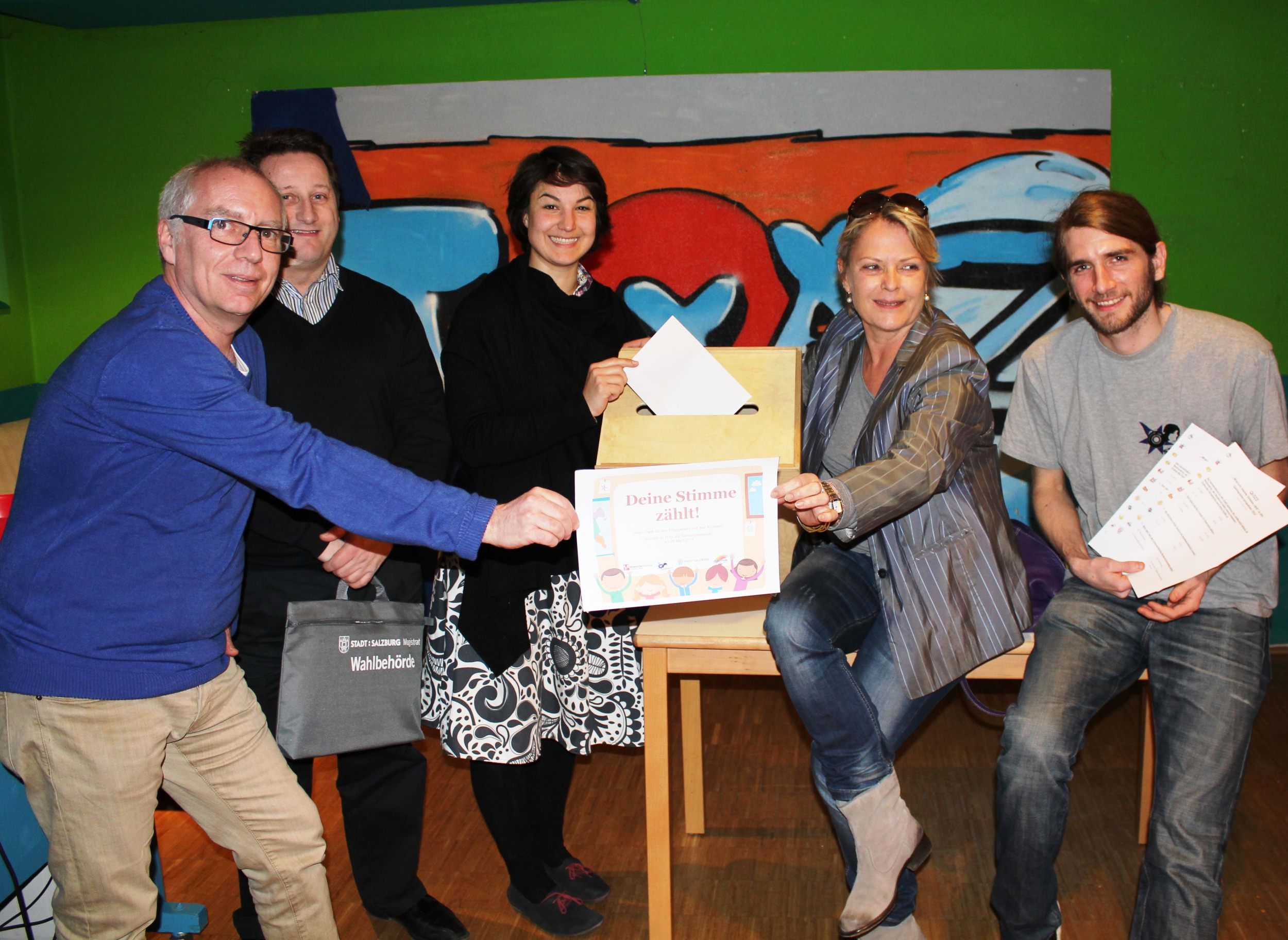 Jugendkoordinatorin Isabel Bojanovsky, Wolfgang Lindenthaler BA von Streusalz/Verein Spektrum und das Team des Bewohnerservice Maxglan & Taxham, Dr. Andrea Hohenwarter und Christian Reisinger, die diese Veranstaltung gemeinsam mit dem Einwohner- und Standesamt organisiert hatten, sind mehr als zufrieden. „Das Interesse der Burschen war wirklich enorm. Die wissen nun genau, warum ihre Stimme zählt“, so Dr. Andrea Hohenwarter. „Mit diesem Wissen sind sie für Wahlen bestens gerüstet und sie können es auch an ihre FreundInnen weitergeben.“ Zum Dank für die engagierte Mitarbeit spendierte Isabel Bojanovsky jedem Teilnehmer schließlich noch eine Kino-Karte.