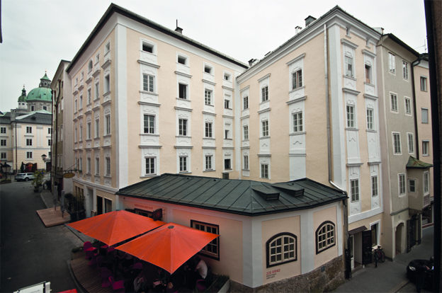 Nach Abschluss der Arbeiten präsentiert sich das Gebäude als elegantes Salzburger Bürgerhaus mit Wohnungen und Geschäftslokalen im Erdgeschoss, das den Charme der Jahrhunderte mit moderner Technik und Komfort vereint.