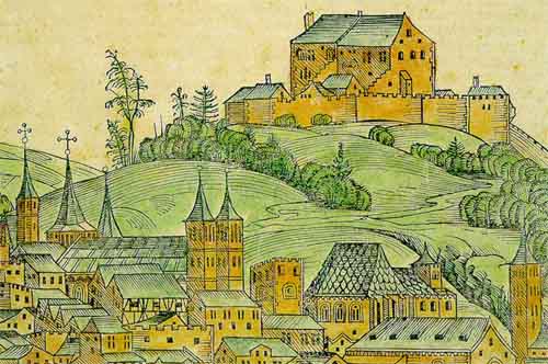 Füßen gelegenen Stadt. Mit ihren mächtigen und weitläufigen Mauern, mit ihren Gebäuden, Bastionen und
