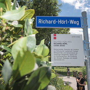 Bei einem kleinen Festakt wurde am Dienstag, 30. Juni 2020, der Geh- und Radweg, der von der Hellbrunner Straße zum Freisaalweg führt, nach Richard Hörl (1939-2019) benannt. „Man kann fast schon sagen: Richard Hörl war eine Legende. Er hat sich zu Recht gegen die Verbauung von Salzburgs Süden erhoben: Dank ihm ist der Gründlandschutz heute nicht verhandelbarer Konsens in der Stadtpolitik!", charakterisierte Salzburgs Stadtoberhaupt Harald Preuner in seiner Laudatio den Namensgeber. Hörl ist als streitbarer Grünlandschützer und Mitbegründer der Salzburger Bürgerliste in die Lokalgeschichte eingegangen: Der gelernte Bäckermeister und Konditor kämpfte unter anderem für die Erhaltung der Stadtlandschaft Freisaal im Süden Salzburgs, die direkte Demokratie und die Radfahrer*innen.