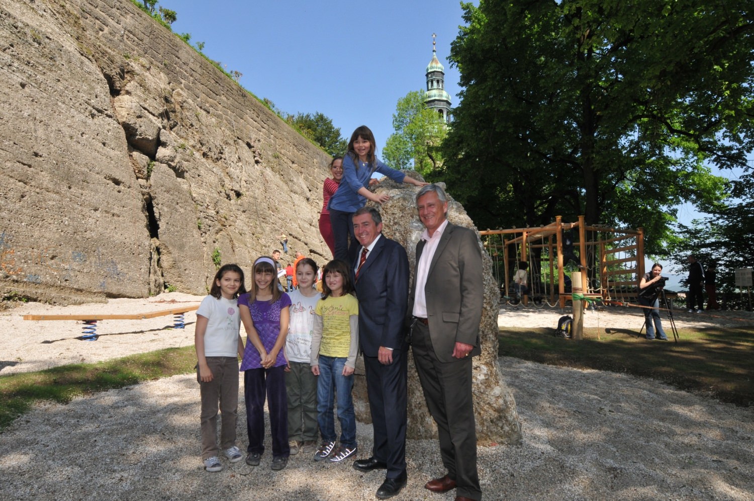 Für Bürgermeister Heinz Schaden und den Ressortchef des Gartenamtes, Vizebürgermeister Harry Preuner, ist ein lang gehegter Wunsch in Erfüllung gegangen: „Mit dem Kletterparcours Müllner Schanze haben wir eine neue Attraktion besonders für die Jugend geschaffen!“, freuen sich die beiden bei der Erstbesichtigung am Donnerstag, 7. Mai 2009.
