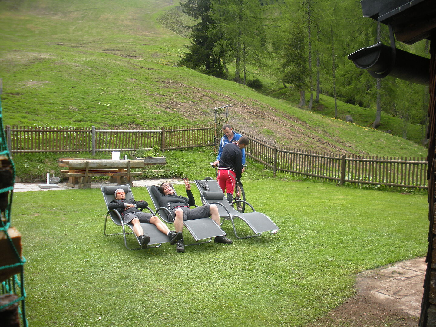 Das Jakob-Riedl-Heim befindet sich mitten im Almgebiet in Werfenweng. Daher ist das Grundstück eingezäunt um die zahlreichen Kühe von der Liegewiese fern zu halten. Schon des Öfteren mußten beim Arbeitseinsatz im Frühling die Rinder von der Liegewiese gescheucht werden, da sie es sich dort gemütlich gemacht hatten.