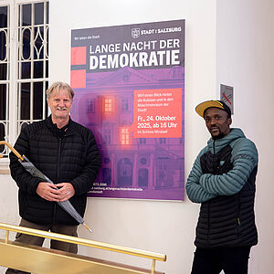 - Ausstellung „Demokratie früher & heute“: Beim Empfang in der Wolf-Dietrich Halle zeigen 16 Ausstellungstafeln, wie Demokratie funktioniert und sich im Lauf der Zeit entwickelt hat.