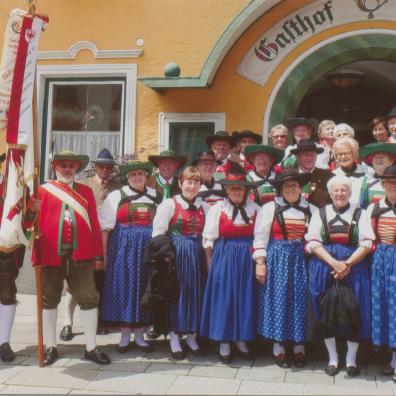Gruppenfoto des Südtiroler Verbandes vor einem Gasthaus in Bischofshofen