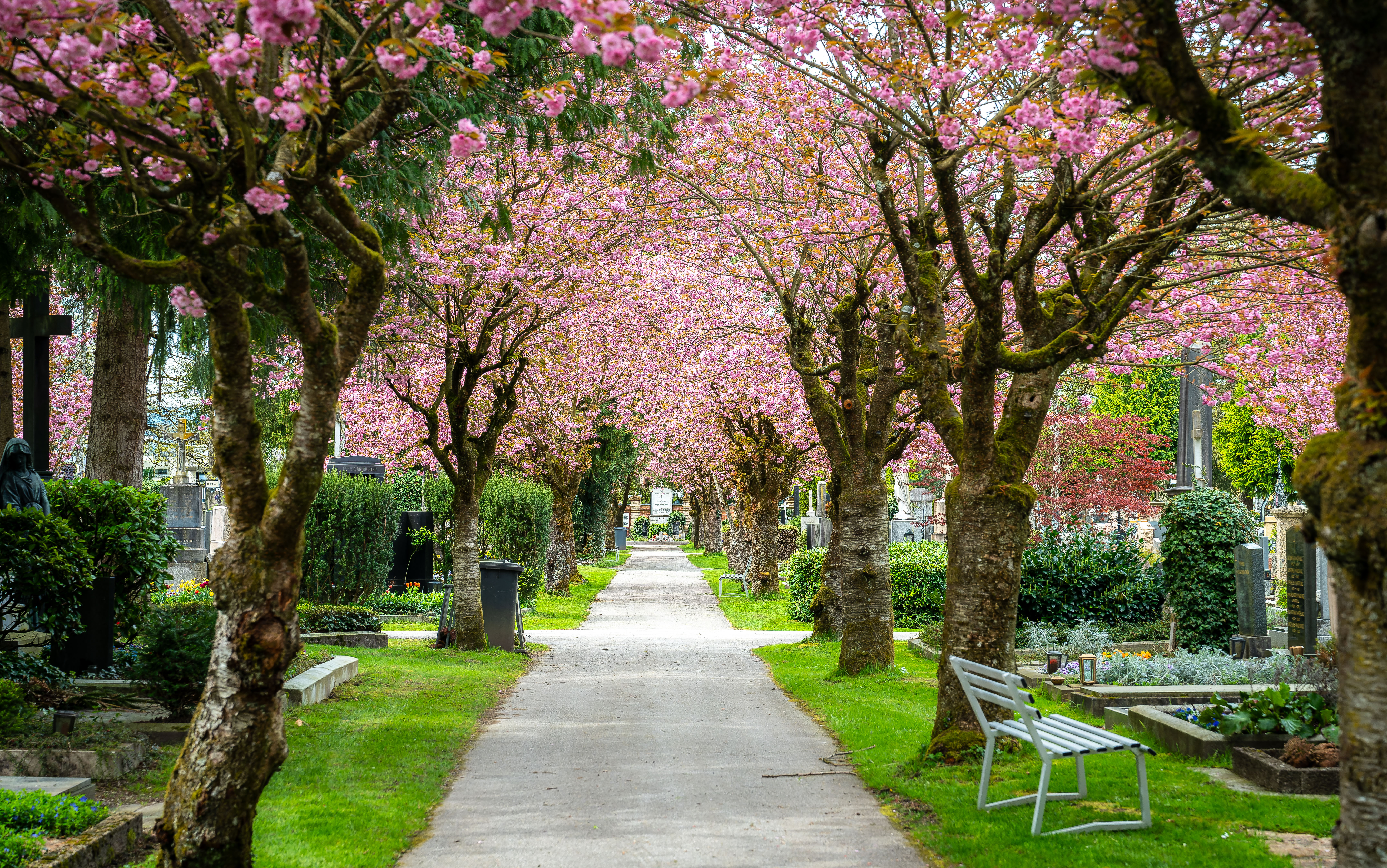 Ein Friedhof ist ein Ort der Trauer und Besinnung, darüber hinaus bietet er als Naherholungsgebiet inmitten der Stadt für die Besucher:innen sowohl Ruhe als auch Platz für Austausch und Begegnung.