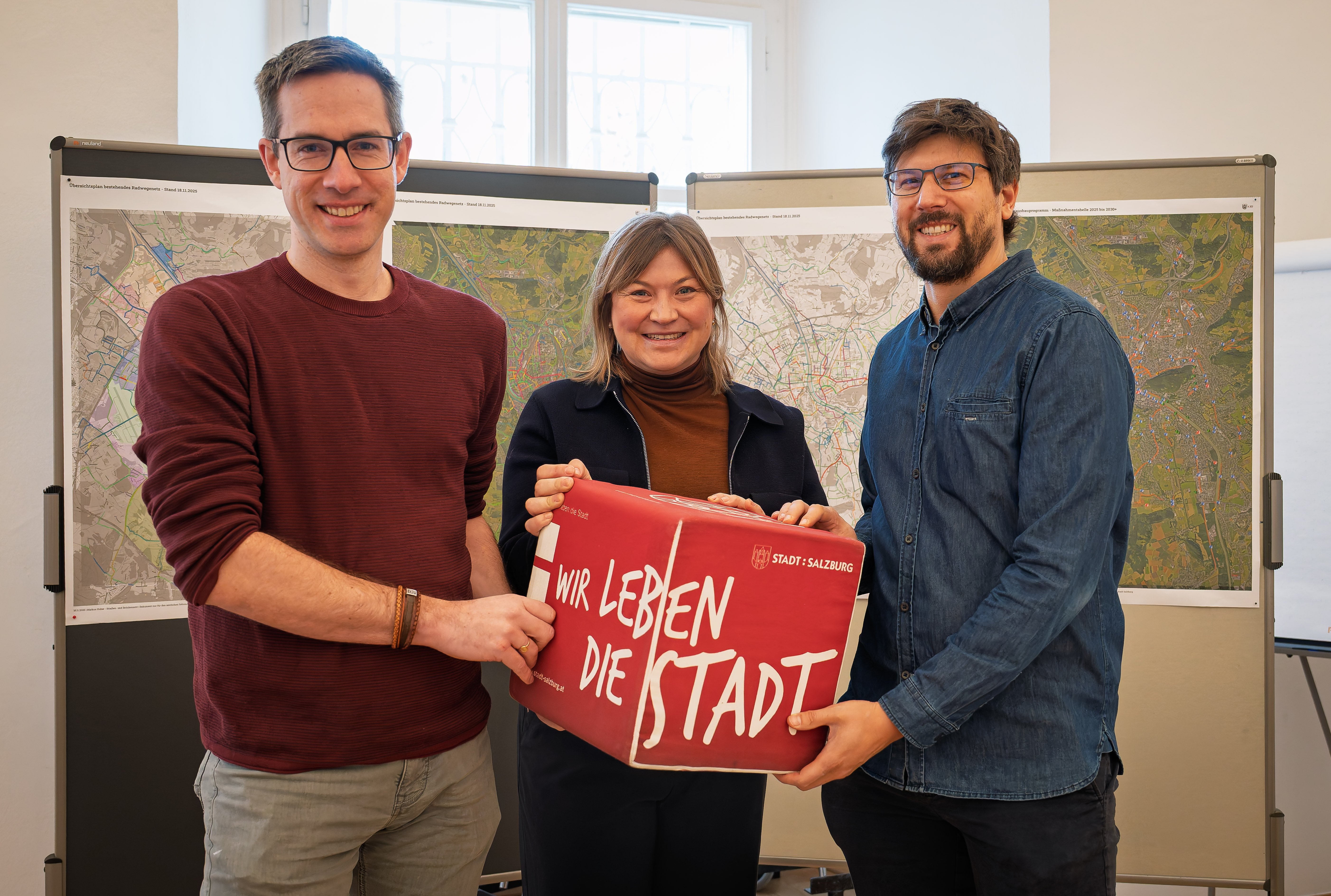 V.l.n.r.: Bürgermeister-Stellvertreter Kay-Michael Dankl, Planungsstadträtin Anna Schiester und Samuel Felbermair, Koordinator für Aktive Mobilität, haben für die kommenden Jahre viele Verbesserungen für den Radverkehr geplant.