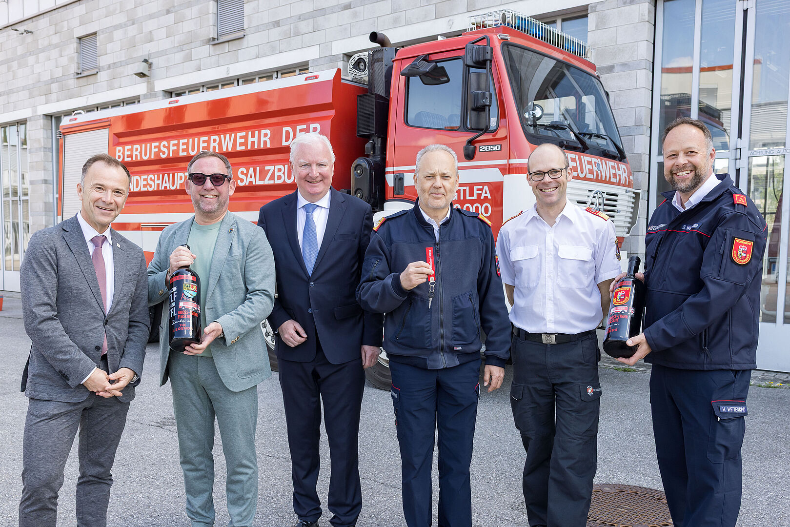 Altes Großtanklöschfahrzeug der Berufsfeuerwehr Salzburg wird an Landesfeuerwehrverband übergeben