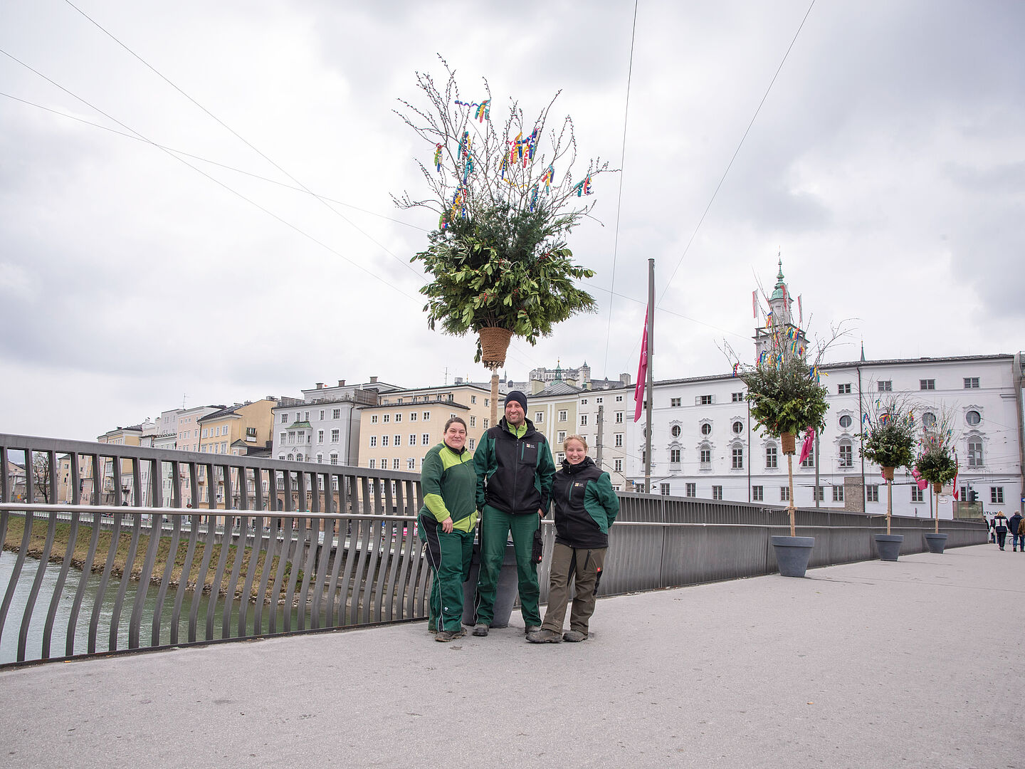 Auch heuer zieren zehn liebevoll gebundene Palmbuschen die Staatsbrücke – ein österlicher Brauch, der in Salzburg längst Tradition hat. Rechtzeitig vor Ostern sorgen die Profis der Stadtgärten dafür, dass Bewohner:innen und Besucher:innen den bunten Osterschmuck schon von weitem wahrnehmen können. Die Palmbuschen stehen dabei nicht nur für Frühlingsgefühle, sondern gelten auch als Glücksbringer.