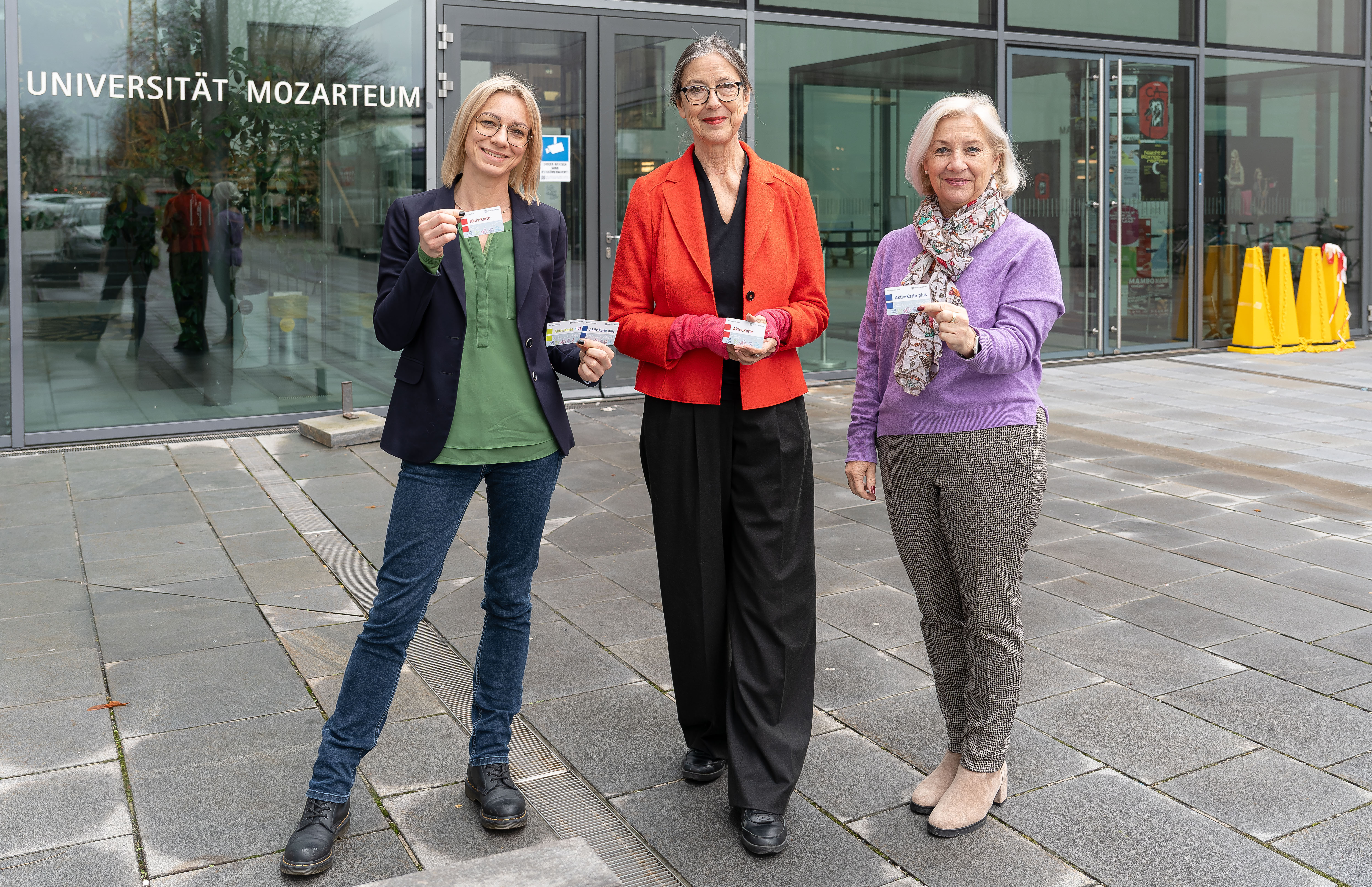 v.l.: Barbara Mair, Leiterin Sozialplanung; Elisabeth Gutjahr, Rektorin der Universität Mozarteum; Stadträtin Andrea Brandner