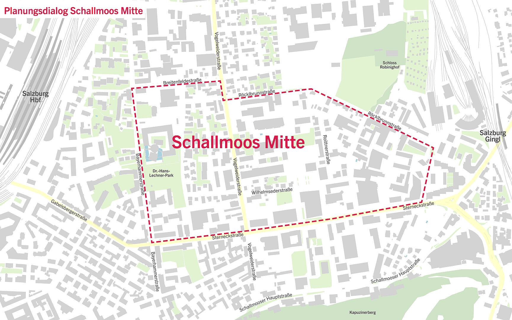 Weil sich Veränderungen in Schallmoos Mitte auch auf das Umfeld auswirken. Daher wurde ein „Ideengebiet“ festgelegt.