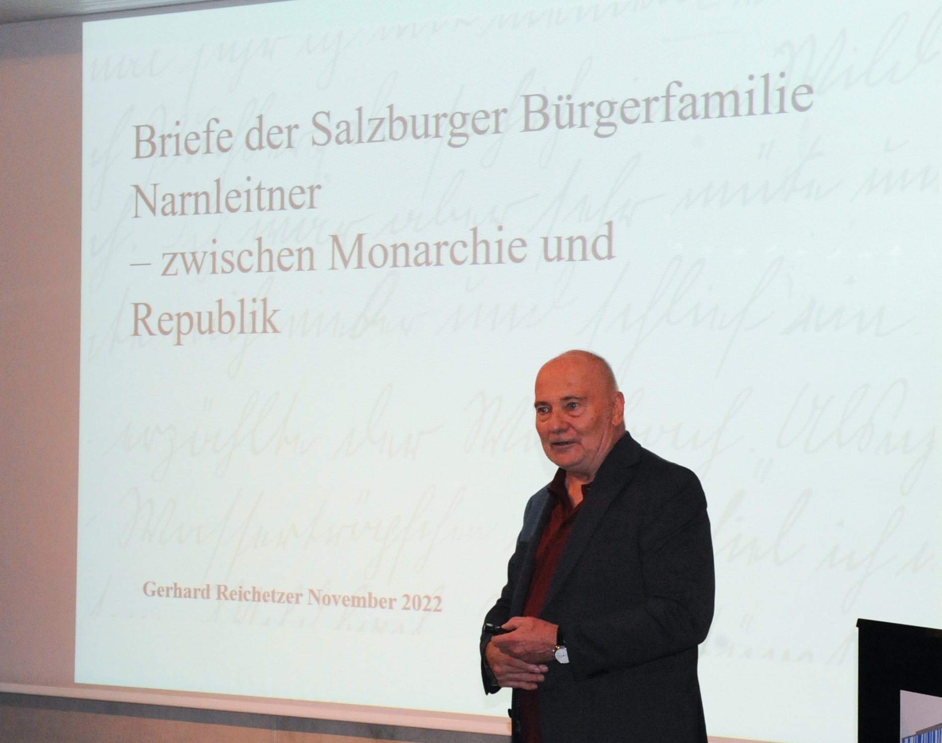 Ein bislang im Stadtarchiv Salzburg unbearbeiteter Nachlass von Briefen und Dokumenten war Anlass für ein Forschungsprojekt, das nun in einer Dissertation aus dem Fachbereich Geschichte an der Universität Salzburg von Gerhard Reichetzer bearbeitet wird. Im Mittelpunkt des Interesses steht die Salzburger Bürgerfamilie Franz Narnleitner, die ihr Leben in der politisch ereignisreichen Zeit zwischen Monarchie und Republik zu bewältigen hatte. Inwieweit spiegeln sich Lebenswelt und Alltag in der brieflichen Korrespondenz zwischen Familienmitgliedern und Freunden wider?
