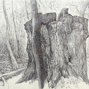 Das Projekt (2020 bis 2025) ist eine genaue und eindringliche Befragung des Stellenwerts der Zeichnung, der Abbildung von Wirklichkeit, dem Verhältnis von Bild und Natur und der Positionierung des Schauenden, des Wahrnehmenden gegenüber einer vermeintlichen Außenwelt zu seiner eigenen Person. Es ist das Eindringen in eine Materie, die letztlich als das eigene Selbst verstanden wird, eine Dechiffrierung der (unberührten) Natur, in diesem Fall des Waldes als Manifestation des Lebendigen und des Toten, ein Versuch, die Lesbarkeit der Erscheinungen in Hinblick auf die große universelle Sprache zu ermöglichen.