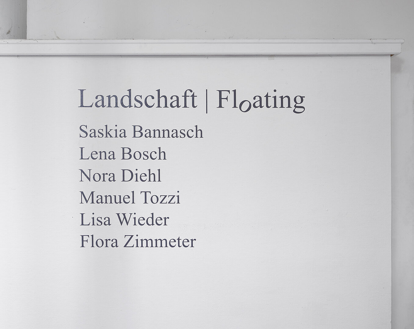 Die Ausstellung versammelt sechs künstlerische Positionen, die sich mit unterschiedlichen Aspekten von Landschaft befassen. Raumgreifende Installationen thematisieren natürliche Vorgänge, fließende Übergänge und irritierende Brüche. Fotografische und grafische Arbeiten transformieren organische Formen und Flächen. Floating lässt ein vielschichtiges Bild entstehen, wie Landschaft gedacht, gespürt und imaginiert werden kann.