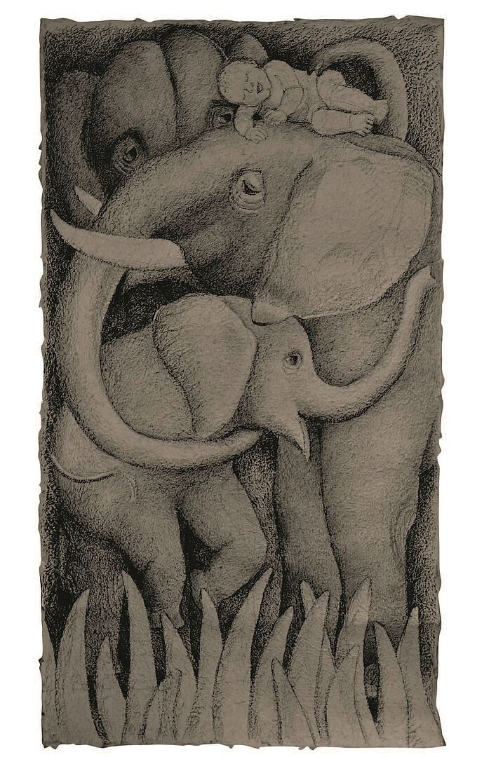 Marianne Manda bewundert die Vielfalt der Tierwelt als Teil der Schöpfung. Sie zeigt in ihren großformatigen Zeichnungen deren Macht und Schönheit. Sie erfindet Relationen von Mensch und Tier und träumt sich in eine paradiesische Welt, zeigt aber auch unsere menschlichen Grenzen.