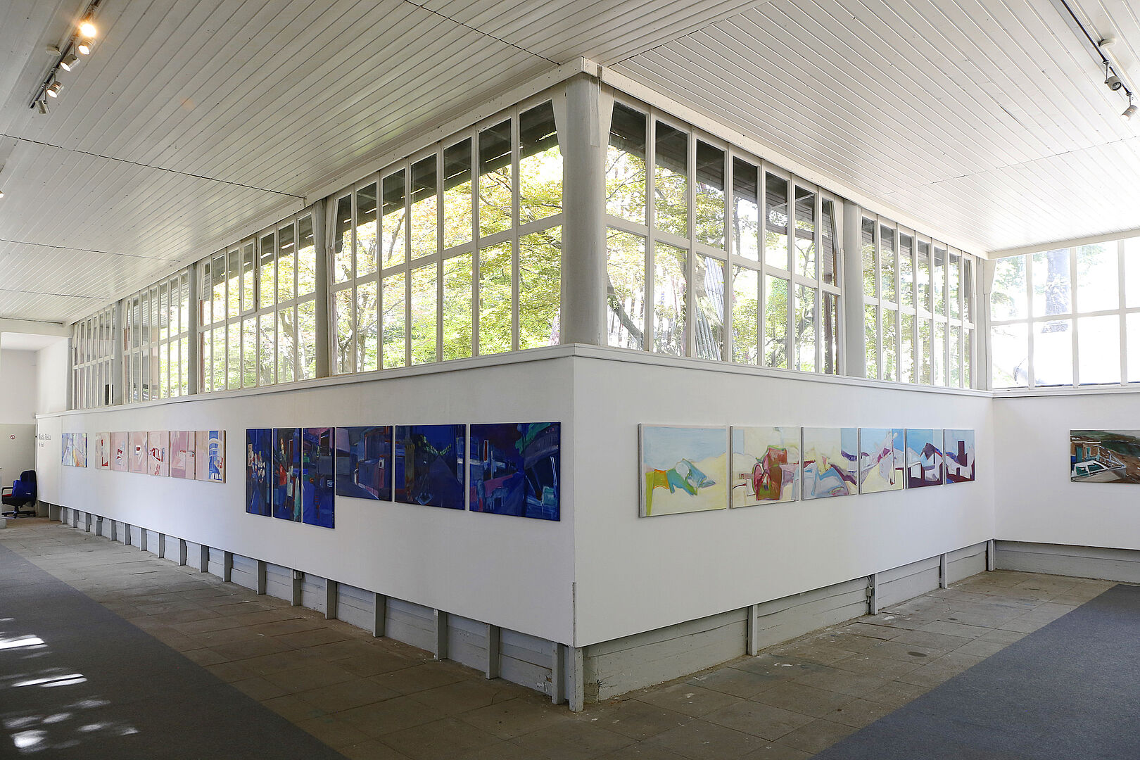 IM FLUSS’ versammelt eine Werkserie von Mischa Reska, die sich mit vom Menschen hervorgerufenen (Natur)-Katastrophen beschäftigt. Den malerischen Zyklus entwickelt sie seit 2008 kontinuierlich, er umfasst beinahe 150 Arbeiten, ca 100 werden im Zwergelgartenpavillon ausgestellt.