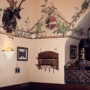 Das zeigt sich in der gelebten Bierkultur ebenso wie in der erhaltenen künstlerischen Ausstattung. Die handgeschnitzten Möbel im expressionistischen Zackenstil greifen die Kunst des Bierbrauens und die einzelnen Bundesländer auf und wurden erst kürzlich aufwendig restauriert.